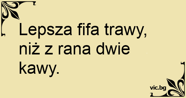 Lepsza fifa trawy, niż z rana dwie kawy.
