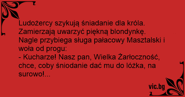 - Kucharze! Nasz pan, Wielka Żarłoczność, chce, coby śniodanie dać mu do lóżka, na surowo!...