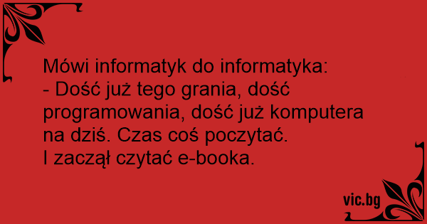 - Dość już tego grania, dość programowania, dość już komputera na dziś. Czas coś poczytać.