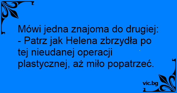 - Patrz jak Helena zbrzydła po tej nieudanej operacji plastycznej, aż miło popatrzeć.