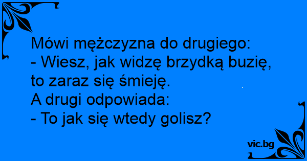 - Wiesz, jak widzę brzydką buzię, to zaraz się śmieję.