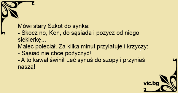 - A to kawał świni! Leć synuś do szopy i przynieś naszą!