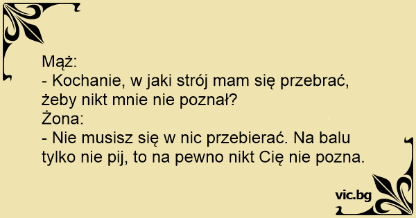 - Kochanie, w jaki strój mam się przebrać, żeby nikt mnie nie poznał?