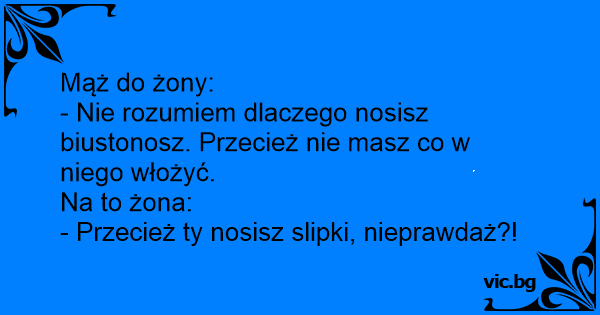 - Nie rozumiem dlaczego nosisz biustonosz. Przecież nie masz co w niego włożyć.