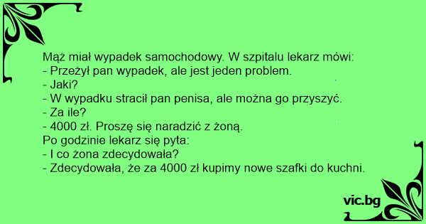 Mąż miał wypadek samochodowy. W szpitalu lekarz mówi:
