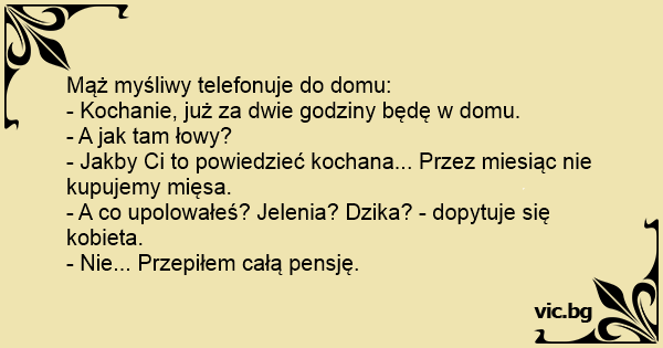 Mąż myśliwy telefonuje do domu: