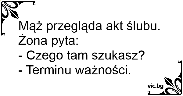 Al Bundys abgelaufener Führerschein Πιστοποιητικό I got all dewy eyed when I saw my husband looking at our marriage certificate for half an hour. Wife: "What are you doing?" Husband : Nothing. Wife : "Nothing...? You've been reading our marriage certificate for an hour." Husband : "I was looking for the expiration date." Der Mann starrt auf die Heiratsurkunde, dreht sie mehrfach um und wieder zurück. Darauf die Frau: "Sag mal, suchst du was? Hast du etwa wieder unseren Hochzeitstag vergessen?" Darauf der Mann:... Vrouw: "Wat ben je aan het doen?" Echtgenoot: "Niets." Vrouw: "Niets...? Je staart al een uur naar ons huwelijkscertificaat. Echtgenoot: "Ik zoek de vervaldatum. Sotia: - Iubitule ce faci? Sotul: - Nimic! Sotia: - Cum nimic? De-o ora tot studiezi Certificatul nostru de casatorie! Sotul: - Cautam data expirarii !