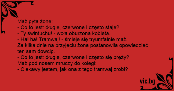- Ha! ha! Tramwaj! - śmieje się tryumfalnie mąż.