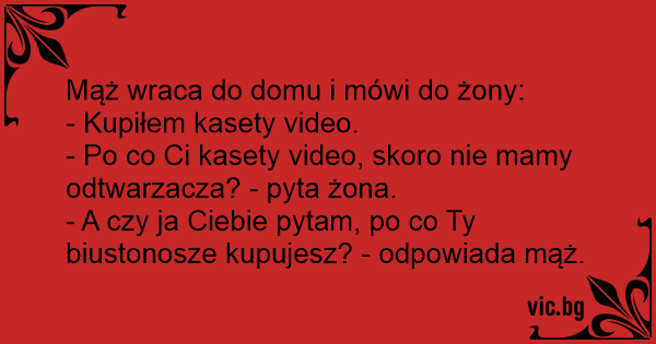 - Po co Ci kasety video, skoro nie mamy odtwarzacza? - pyta żona.