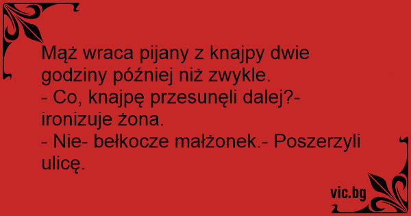Mąż wraca pijany z knajpy...
