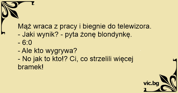 - Jaki wynik? - pyta żonę blondynkę.