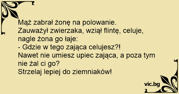 Zauważył zwierzaka, wziął flintę, celuje, nagle żona go łaje: