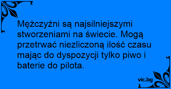 Mężczyźni są najsilniejszymi stworzeniami na świecie. Mogą przetrwać niezliczoną ilość czasu mając do dyspozycji tylko piwo i baterie do pilota.
