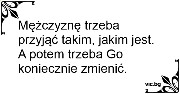 Mężczyznę trzeba przyjąć takim, jakim jest. A potem trzeba Go koniecznie zmienić.