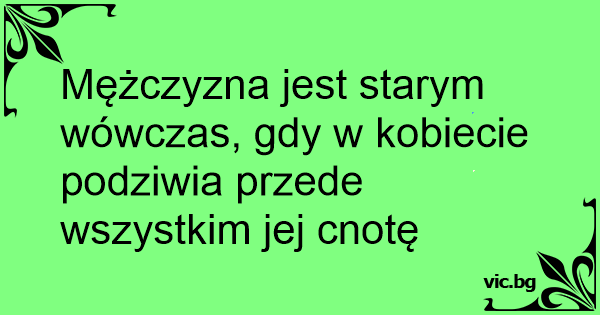 Mężczyzna jest starym wówczas, gdy w kobiecie podziwia przede wszystkim jej cnotę