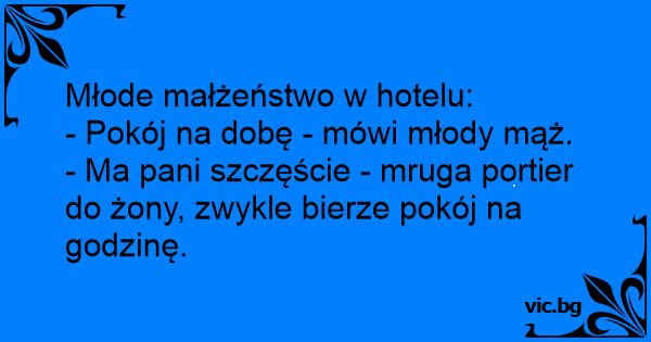- Pokój na dobę - mówi młody mąż.