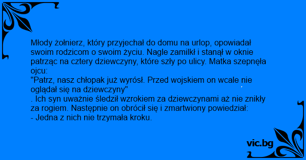 "Patrz, nasz chłopak już wyrósł. Przed wojskiem on wcale nie oglądał się na dziewczyny"