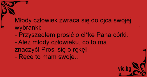 - Ależ młody człowieku, co to ma znaczyć! Prosi się o rękę!