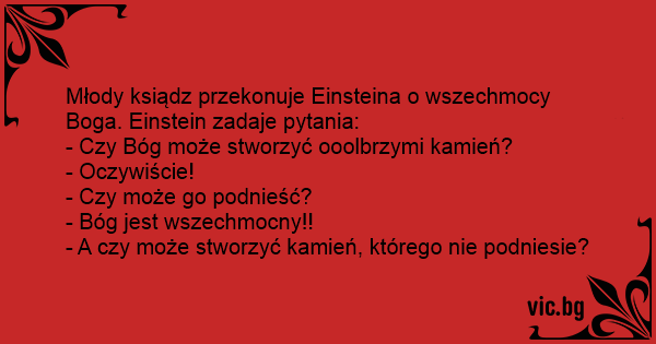 Młody ksiądz przekonuje Einsteina o wszechmocy Boga. Einstein zadaje pytania: