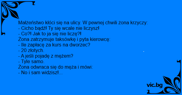 Żona zatrzymuje taksówkę i pyta kierowcę: