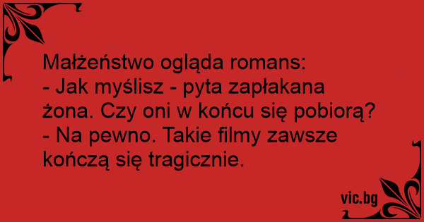 - Jak myślisz - pyta zapłakana żona. Czy oni w końcu się pobiorą?