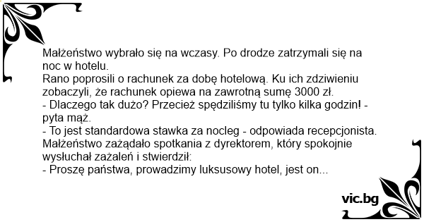 Rano poprosili o rachunek za dobę hotelową. Ku ich zdziwieniu zobaczyli, że rachunek opiewa na zawrotną sumę 3000 zł.
