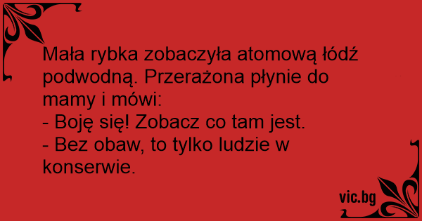 Mała rybka zobaczyła atomową łódź podwodną. Przerażona płynie do mamy i mówi: