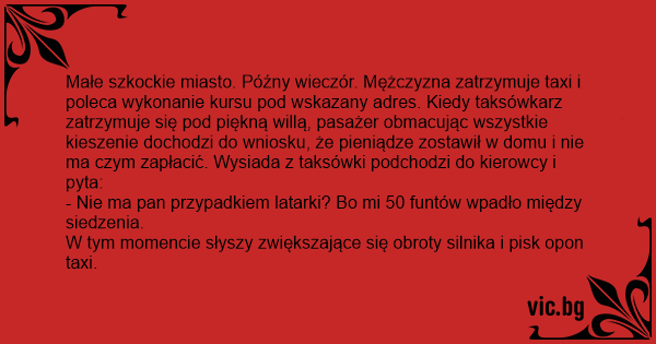 - Nie ma pan przypadkiem latarki? Bo mi 50 funtów wpadło między siedzenia.