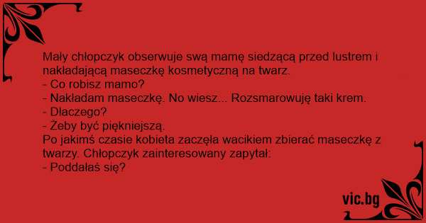 Po jakimś czasie kobieta zaczęła wacikiem zbierać maseczkę z twarzy. Chłopczyk zainteresowany zapytał: