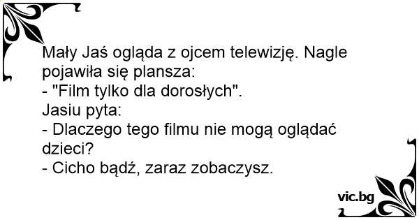 Mały Jaś ogląda z ojcem telewizję. Nagle pojawiła się plansza: