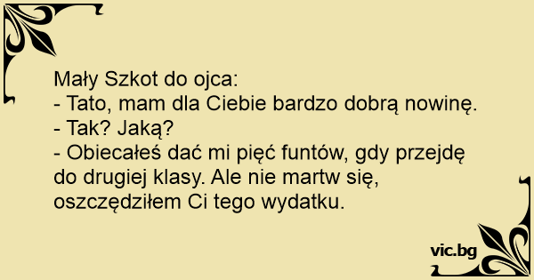 - Obiecałeś dać mi pięć funtów, gdy przejdę do drugiej klasy. Ale nie martw się, oszczędziłem Ci tego wydatku.