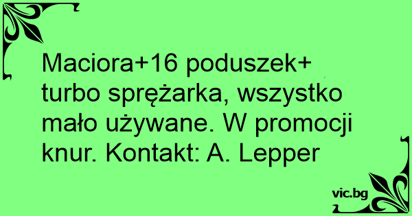 Maciora+16 poduszek+ turbo sprężarka, wszystko mało używane. W promocji knur. Kontakt: A. Lepper