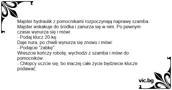 Wreszcie kończy robotę, wychodzi z szamba i mówi do pomocników: