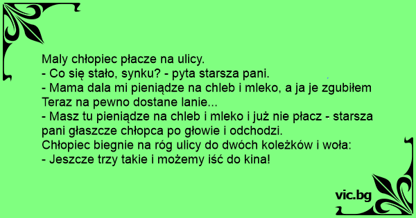 - Mama dala mi pieniądze na chleb i mleko, a ja je zgubiłem Teraz na pewno dostane lanie...