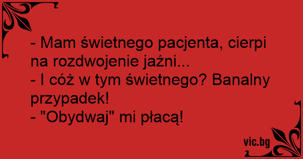- Mam świetnego pacjenta, cierpi na rozdwojenie jaźni...