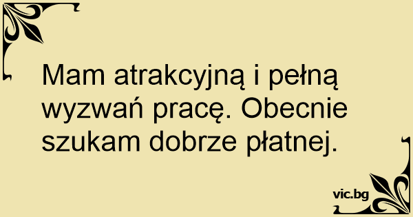 Mam atrakcyjną i pełną wyzwań pracę. Obecnie szukam dobrze płatnej.
