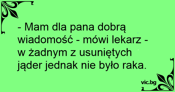 - Mam dla pana dobrą wiadomość - mówi lekarz - w żadnym z usuniętych jąder jednak nie było raka.