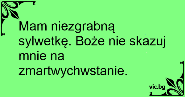 Mam niezgrabną sylwetkę. Boże nie skazuj mnie na zmartwychwstanie.