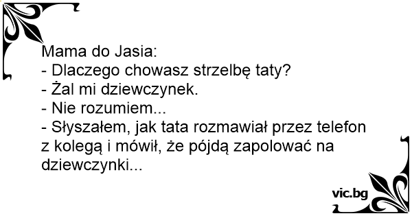 - Słyszałem, jak tata rozmawiał przez telefon z kolegą i mówił, że pójdą zapolować na dziewczynki...