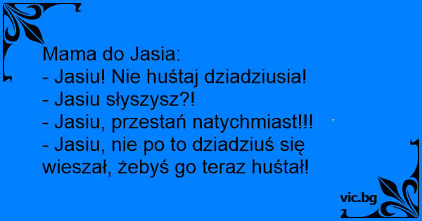 - Jasiu, nie po to dziadziuś się wieszał, żebyś go teraz huśtał!