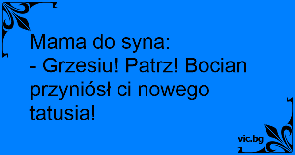 - Grzesiu! Patrz! Bocian przyniósł ci nowego tatusia!