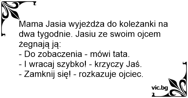 Mama Jasia wyjeżdża do koleżanki na dwa tygodnie. Jasiu ze swoim ojcem żegnają ją: