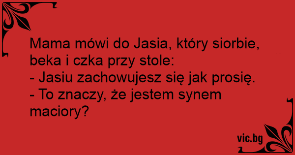 Mama mówi do Jasia, który siorbie, beka i czka przy stole:
