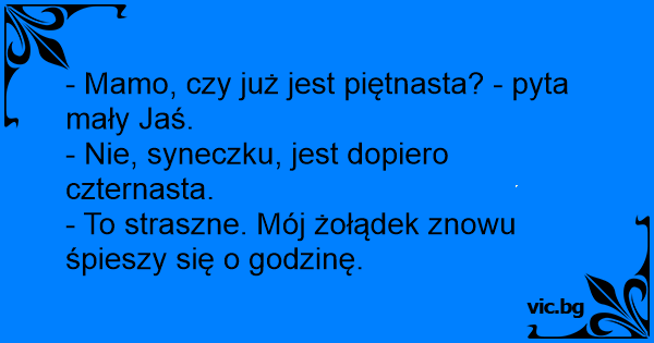- Mamo, czy już jest piętnasta? - pyta mały Jaś.