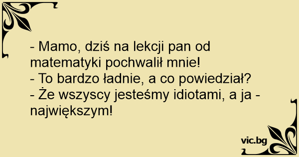 - Mamo, dziś na lekcji pan od matematyki pochwalił mnie!