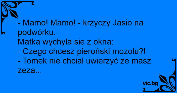 - Mamo! Mamo! - krzyczy Jasio na podwórku.