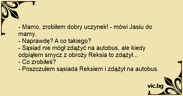 - Sąsiad nie mógł zdążyć na autobus, ale kiedy odpiąłem smycz z obroży Reksia to zdążył...