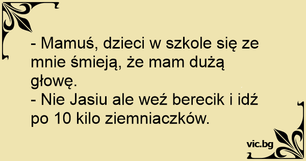 - Mamuś, dzieci w szkole się ze mnie śmieją, że mam dużą głowę.