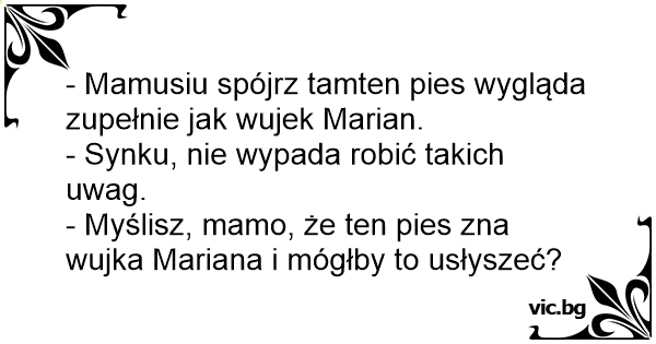 - Mamusiu spójrz tamten pies wygląda zupełnie jak wujek Marian.