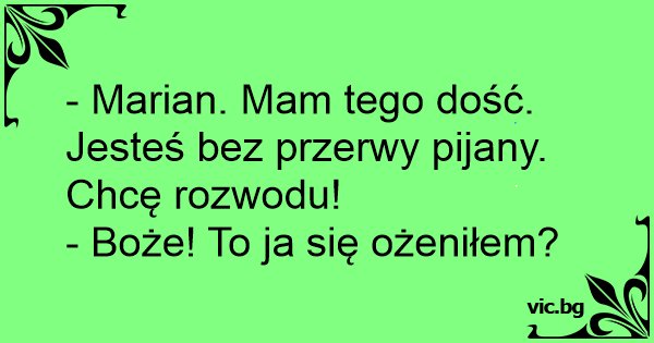 - Marian. Mam tego dość. Jesteś bez przerwy pijany. Chcę rozwodu!
